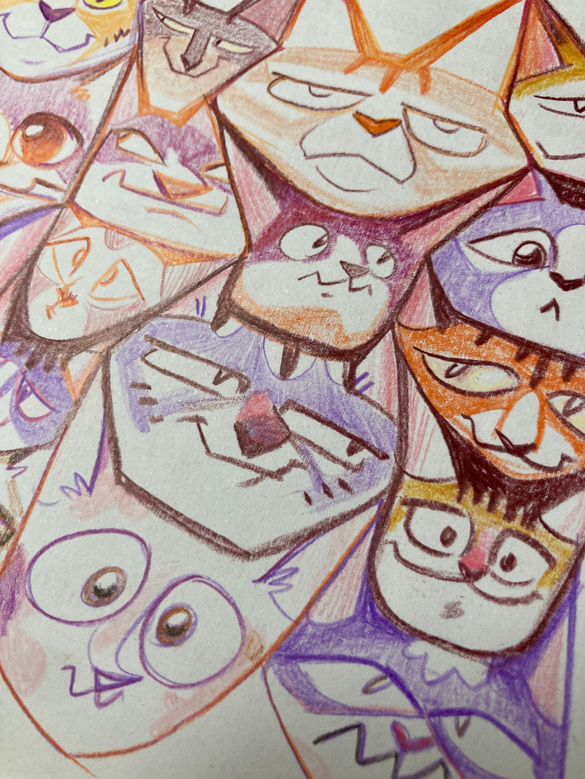 Exactly what you've always needed! A colorful doodle of many cat faces.